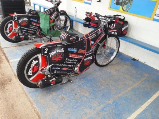 Last Friday I was someway gutted and suddenly remembered Eastbourne is racing on Saturday. Well 8pm I decided I will start 2am to Calais and drive to see the match. Eastbourne is a great place and it was really nice to spend time there with bikes and all speedway stuff. It was nice to see Timo rode brilliant, we thought all the time how to get more speed and set up the bike correctly which we succeeded. I hope he can carry on in the next race which is on Saturday. I must also say, Timo has been really strong mentally and now it´s just to concentrate to do own things 110 % all the time. That´s the only thing what counts in the end.