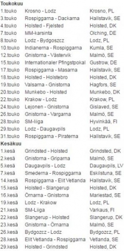 Tsekkaappas muuten Timon kisarupeamaa touko-kesäkuussa. Missä muussa lajissa kilpaillaan ja matkustetaan samassa tahdissa?