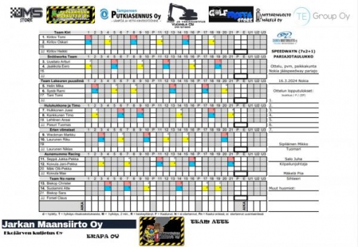 Tämän viikon lauantaina kaasutellaan Nokian speedwayradalla jääspeedwayn pariajokilpailu. Kilpailuun ilmoittautui mukaan seitsemän paria. Lauantaina on siis luvassa 21 vauhdikasta erää tarjolla. Kilpailu starttaa kello 12 ja liput maksavat 10 euroa ja alle 15-vuotiaat pääsevät sisään ilmaiseksi.