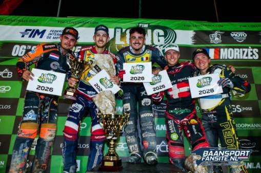 * Tero Aarnio, kuvassa oikealla, juhlii muiden jatkoon päässeiden kanssa. Kuva Jesper Veldhuizen / Baansportfansite